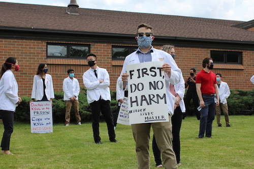 As a show of solidarity, hundreds of WMed students, residents, faculty and staff came together as White Coats for Black Lives to express support for the black community and to honor the memories of black citizens who lost their lives to police brutality. Participants kneeled in silence for 10 minutes at Mt. Zion Baptist Church and at several WMed campuses during the demonstration. The event, organized by Megan Potilechio, MD, a third-year Family Medicine resident, and Kristi VanDerKolk, MD, Family Medicine program director, was one of many hosted by medical schools and institutions across the nation.